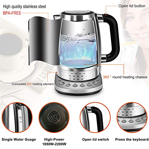 1.7L Electric Kettle Stainless Steel Temperature Control Kettle 2200W Household Kitchen Fast Heating Boiling Teapot Pot…