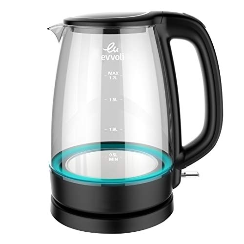 evvoli Glass Body Kettle 1.7 Liter EVKA-KE17MB Italian Brand With 2 Years of Brand Warranty