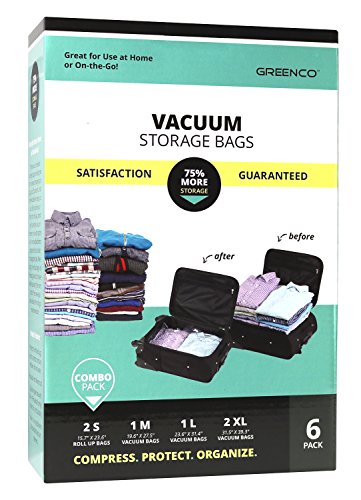 Greenco Vacuum seal and roll up Space Saver Storage Bags – Variety (Small, Medium, Large, X Large) – 6 pack