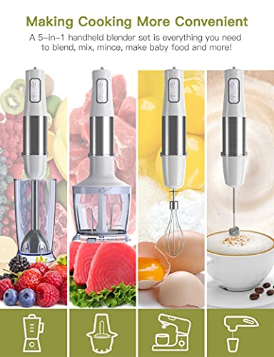 【Perfect Design】: This hand blender includes an immersion blender, a 500ml food chopper, a 600ml measuring cup, an egg beater and a milk frother. Not only do they make food preparation easy and quick, but they also have the greatest versatility and can expand your creativity as a chef.