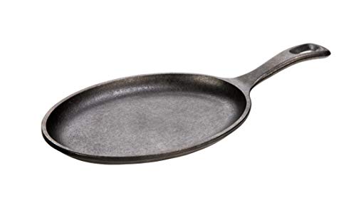 The Lodge Cast Iron Oval Serving Griddle offers superb heat retention and excellent durability. Nothing can surpass the visual appeal of food served on cast iron. Whether it’s the sight and sound of sizzling steak or fajita or just keeping ribs, chicken or pork chops piping hot, it’s sure to turn heads as food makes its way from the kitchen to the table. Easy care: hand wash, dry, rub with cooking oil. Dimensions (including handle): 10″ x 7.5″ Made in the USA.