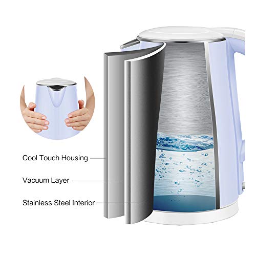 Specification: Midea 1.7L Stainless Steel Electric Kettle, 2200W Cordless Kettle, 360° Swivel Base, Double Wall Cool Touch Body, Power…