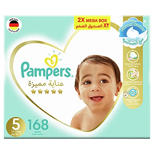 Specification: Pampers Premium Care Diapers, Size 5, 11-16 kg, The Softest Diaper and the Best Skin Protection, 168 Baby Diapers