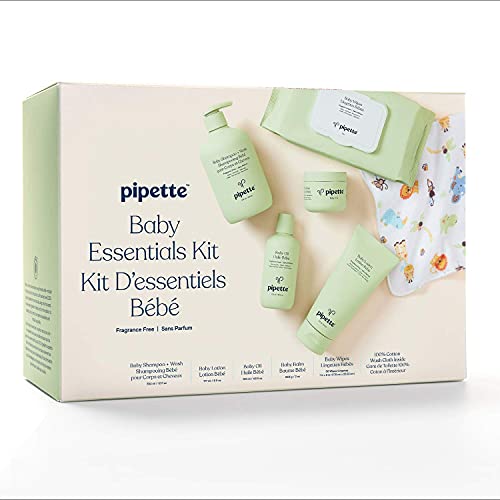 Pipette Baby Essentials Kit – Gender Neutral Baby Gift Set, Hypoallergenic, Petroleum & Fragrance Free, Natural…